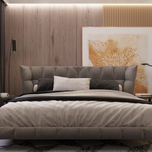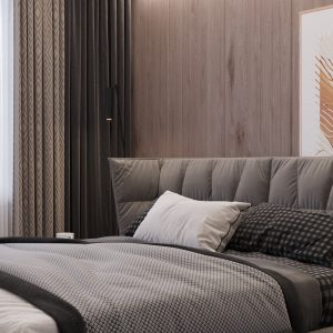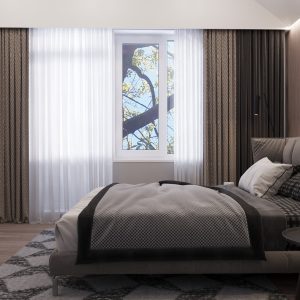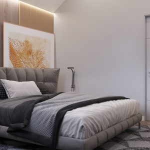 Спальня в загородном доме,стены -декоративная штукатурка,краска,панели-лдсп за изголовьем кровати,наполные покрытия-ламинат. Стиль комнаты-современный Project navigationПредыдущаяPrevious project:Состав дизайн-проекта